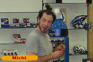 Huber der Head im Bikeshop - hört schreckliche MP3's im shop